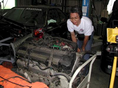 事前にキャリアで運び込まれていた不動な535を前になぜかにこやかな岩野さん。